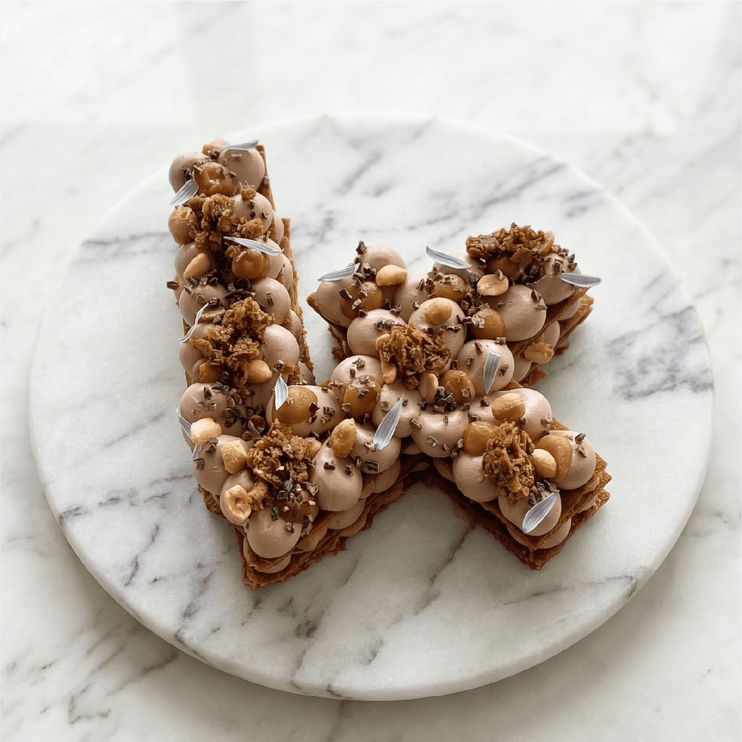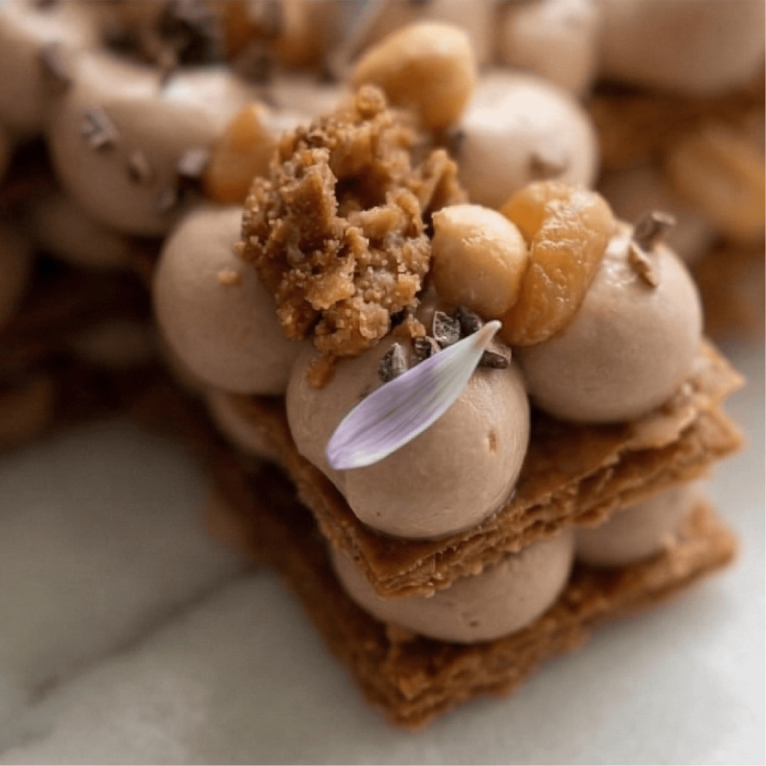 Pâte sucrée, ganache montée chocolat au lait, caramel beurre salé et cacahuètes.