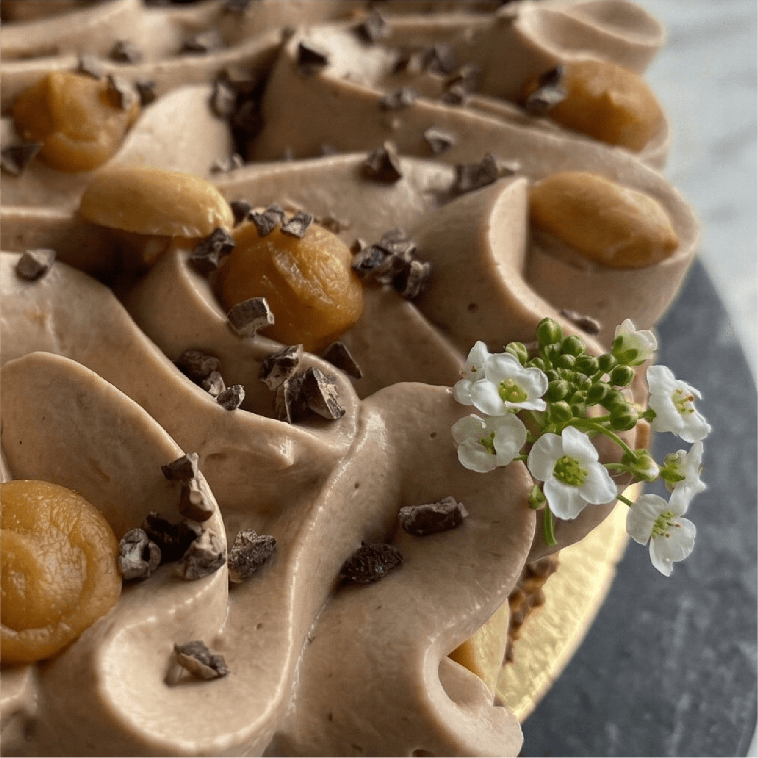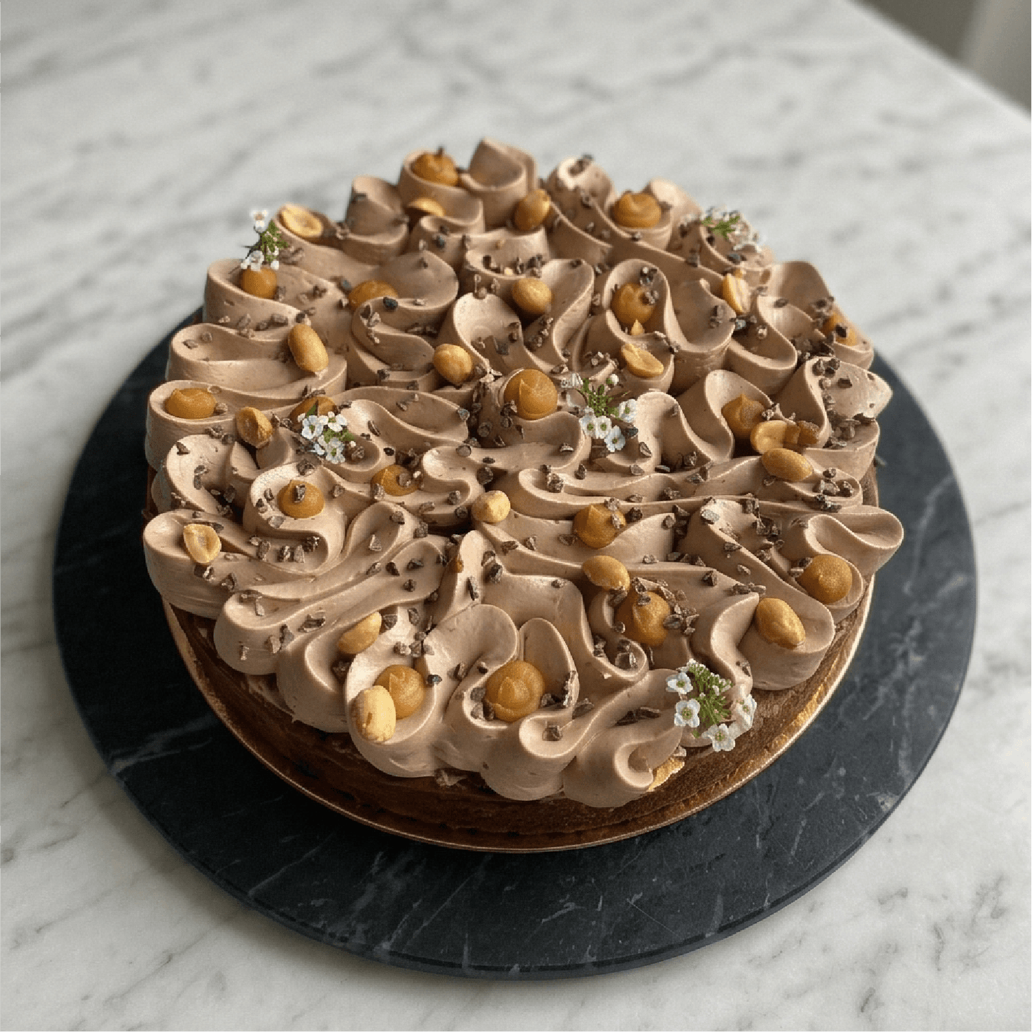 Pâte sucré, caramel beurre salé, cacahuètes, beurre de cacahuète, ganache chocolat noir Valhrona 54%, ganache montée lait.